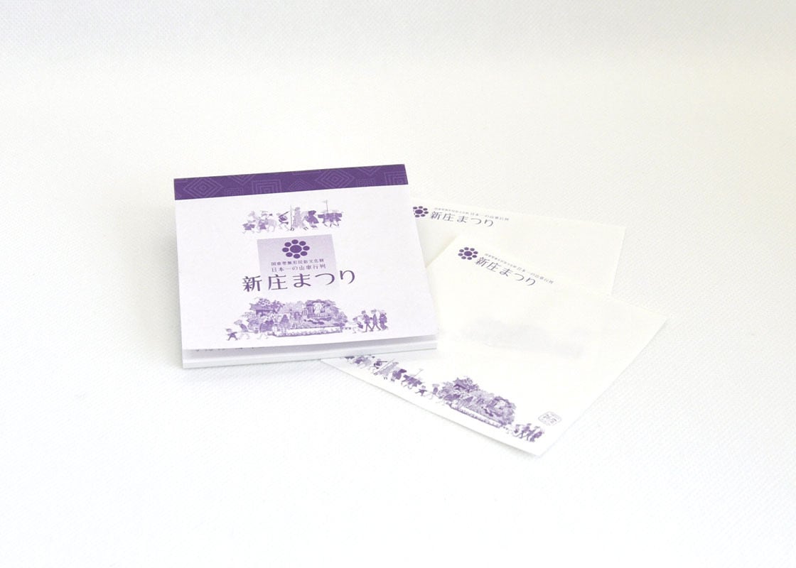 緑と紫の新庄まつりメモ帳。